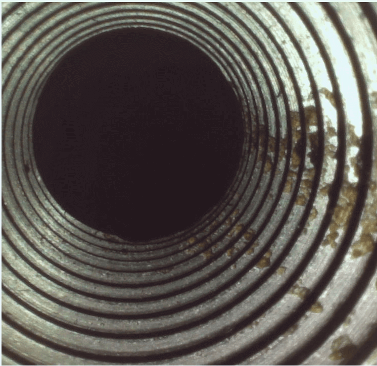 針對客戶現場情況,我們采用了C50系列的高清工業視頻內窺鏡(管線長度1m,管線直徑6mm,景深5-180mm),給客戶進行現場演示,以下是從現場發回的檢測圖片。