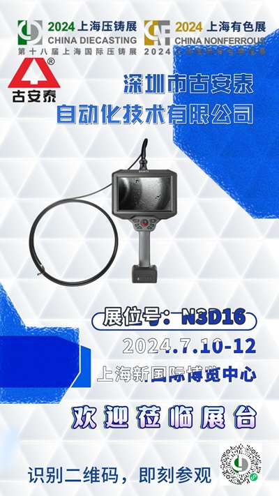 2024年7月10日至12日,上海新國際博覽中心將舉辦第十八屆上海國際壓鑄暨有色鑄造展。深圳市古安泰自動化技術有限公司將攜其最新研發的高清工業內窺鏡系列產品在此次展會中亮相,此次參展不僅將展示古安泰在工業檢測技術領域的最新成果,也預示著公司在國內外市場的進一步拓展。